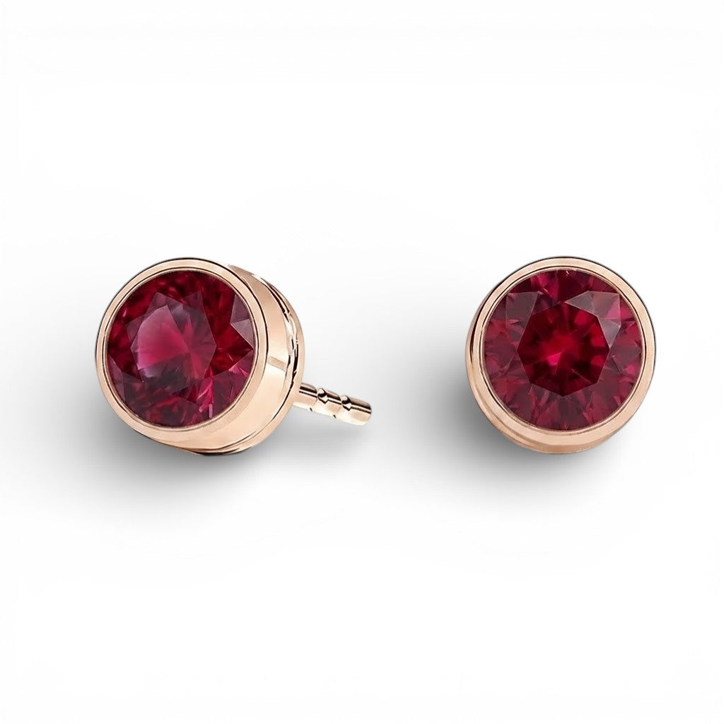 Round Bezel Ruby Stud Earrings