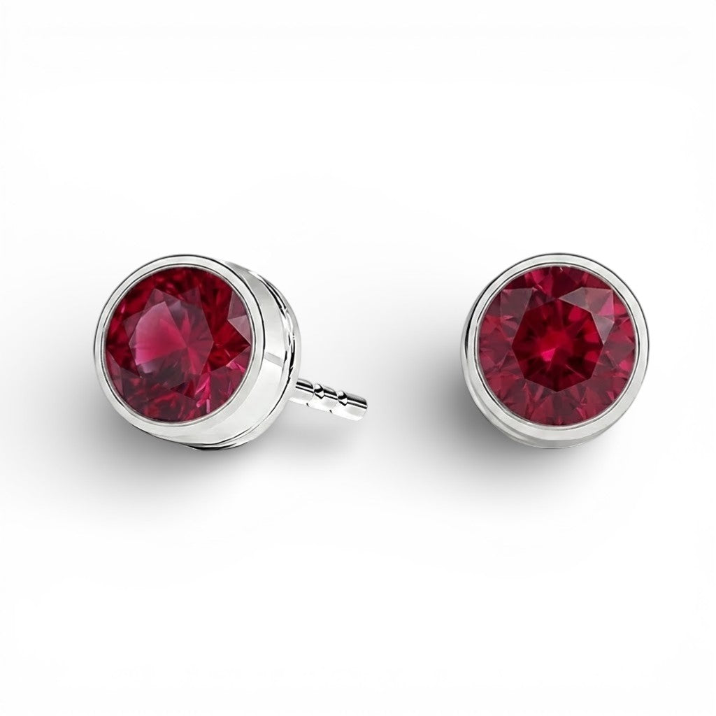 Round Bezel Ruby Stud Earrings