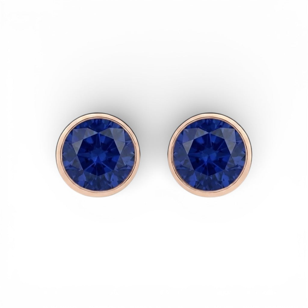 Round Bezel Sapphire Stud Earrings