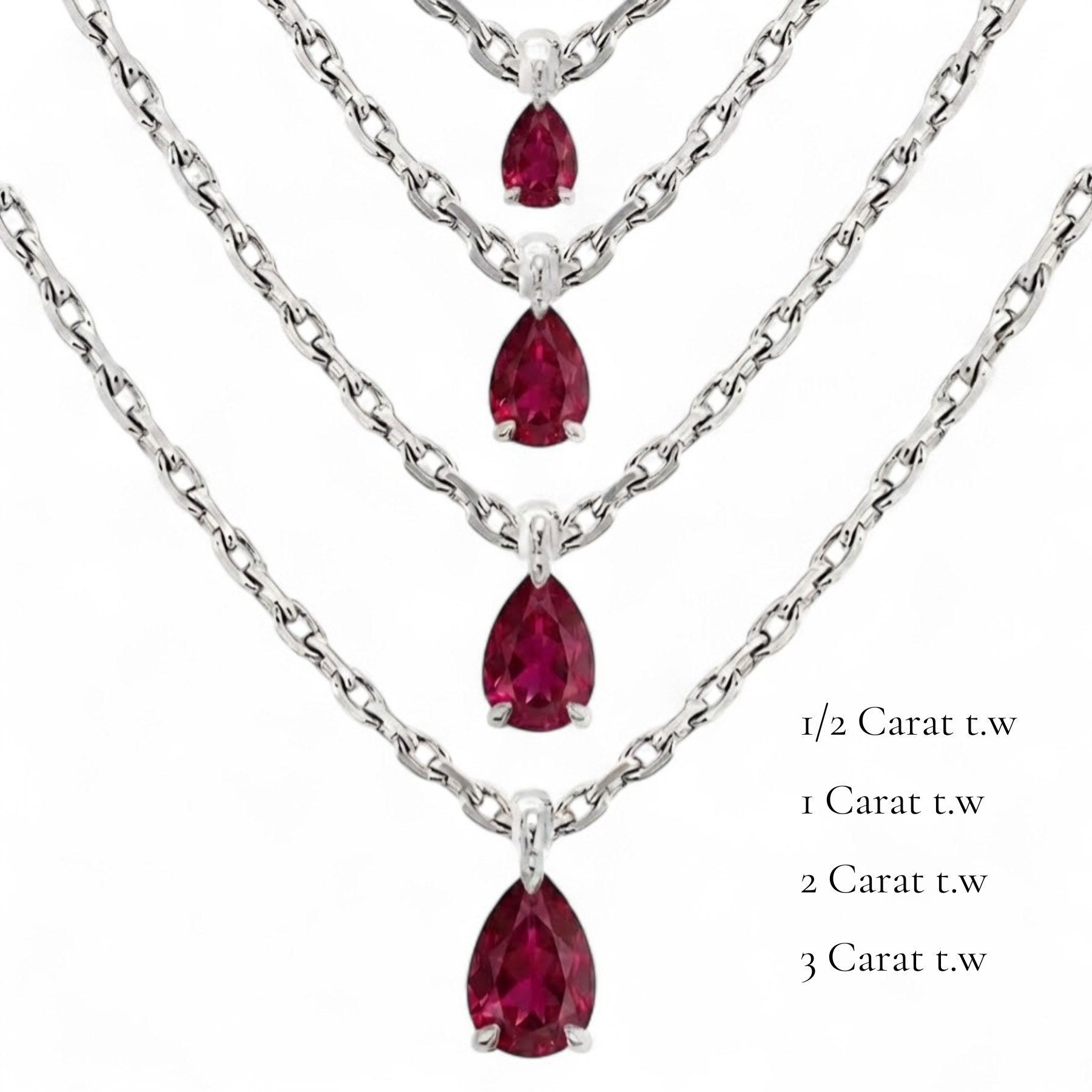 - Gemstone: Pear Cut, Lab-grown Ruby