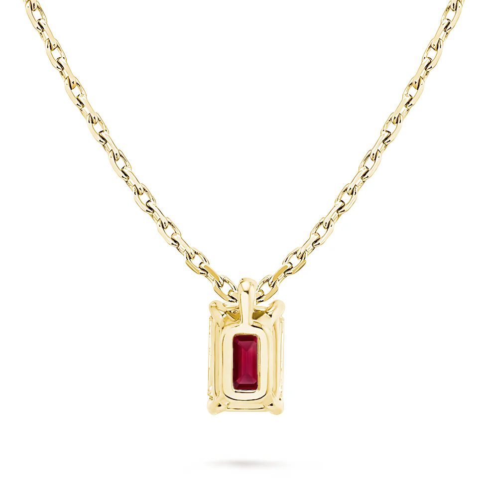 - Gemstone: Emerald Cut, Lab-grown Ruby