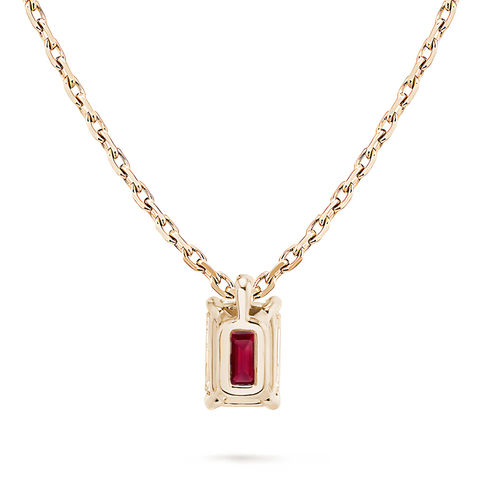 Both baroque and modern, an Emeraude® Ruby Pendant is a must-have. The emerald-cut ruby, with its iconic rectangular facets, exudes sophistication and timeless appeal. The open setting maximizes light reflection, enhancing the ruby’s brilliance and shade.