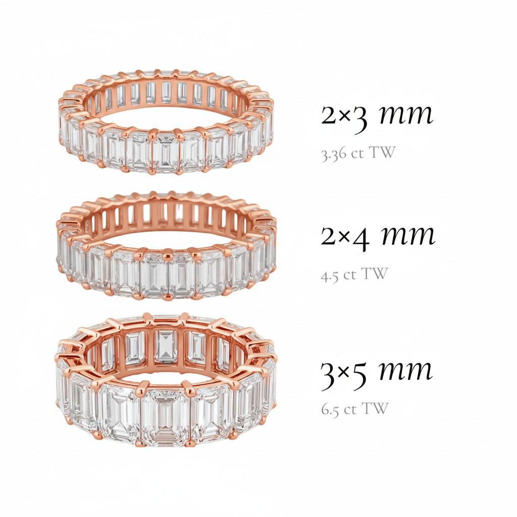Diamond Emerald Eternity Ring - 2*3mm diamonds