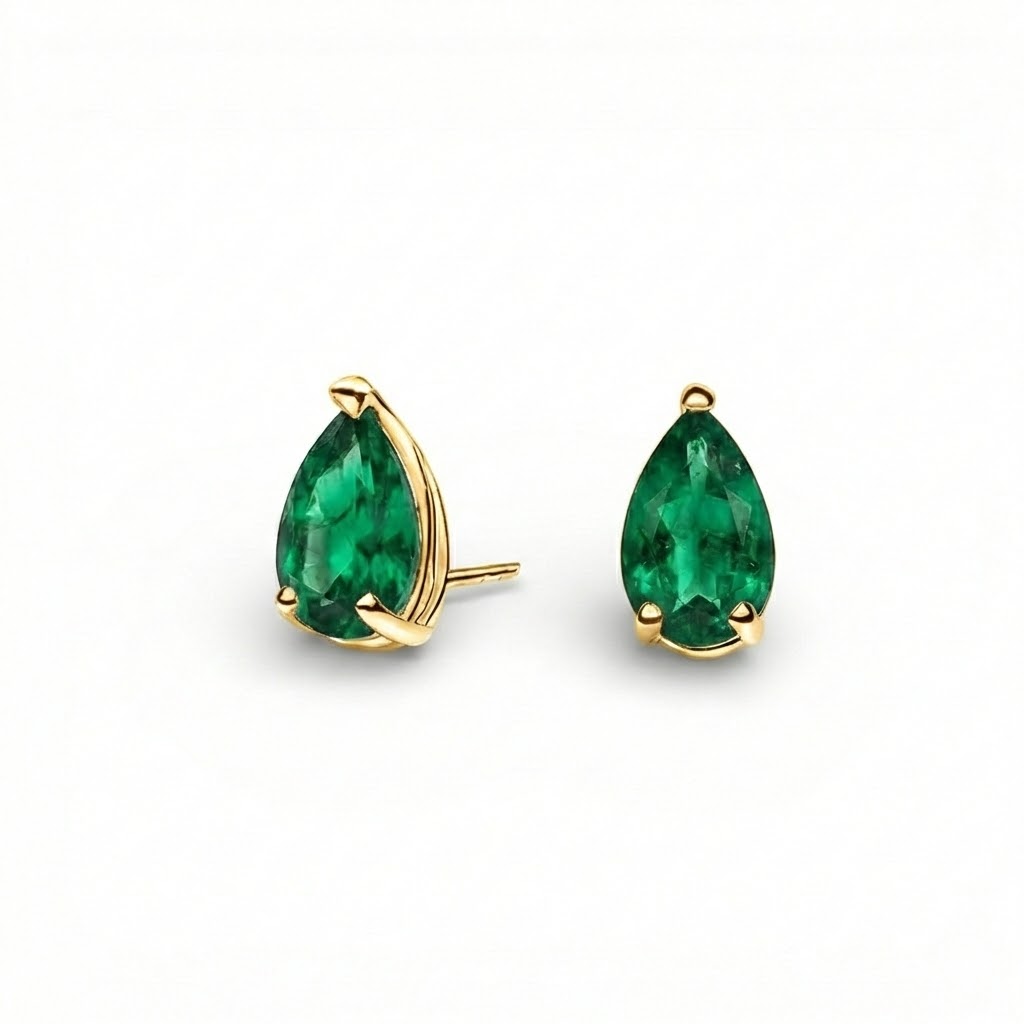 Emerald Solitaire Pear Stud Earrings