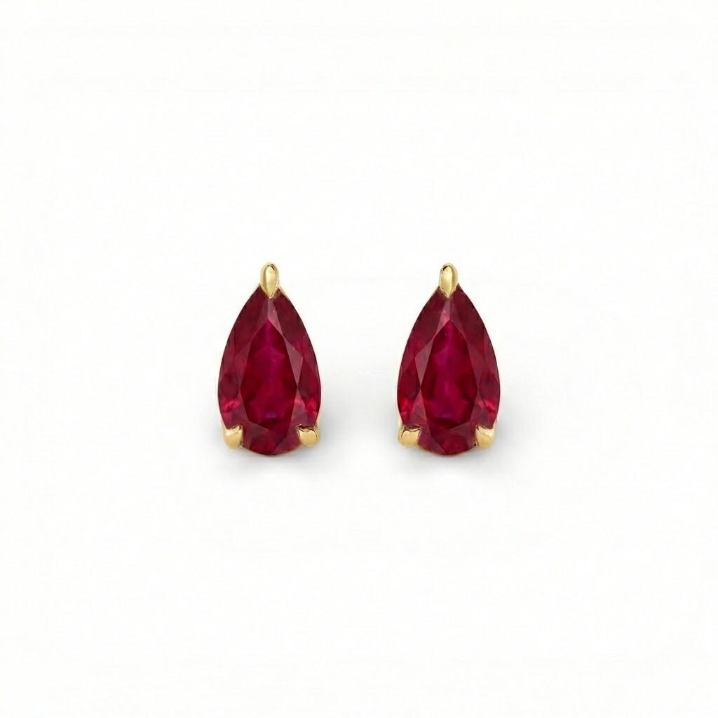Delicate and timeless, our Solitaire Pear Stud Earrings feature a single pear-shaped lab-grown ruby, meticulously set in a minimalist prong setting. These earrings offer a sophisticated, understated elegance perfect for any occasion.