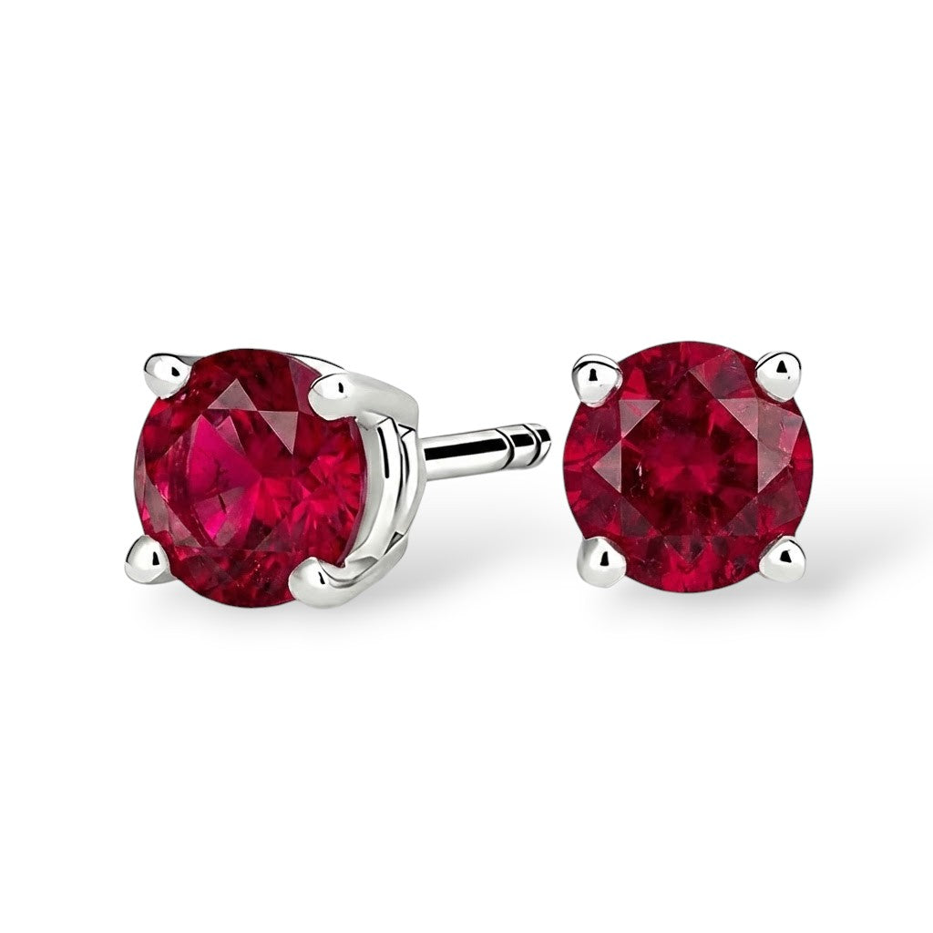Classic and elegant, our Solitaire Round Stud Earrings feature a single round cut ruby, set in a sleek 4-prong setting that allows the stone to shine with maximum brilliance.