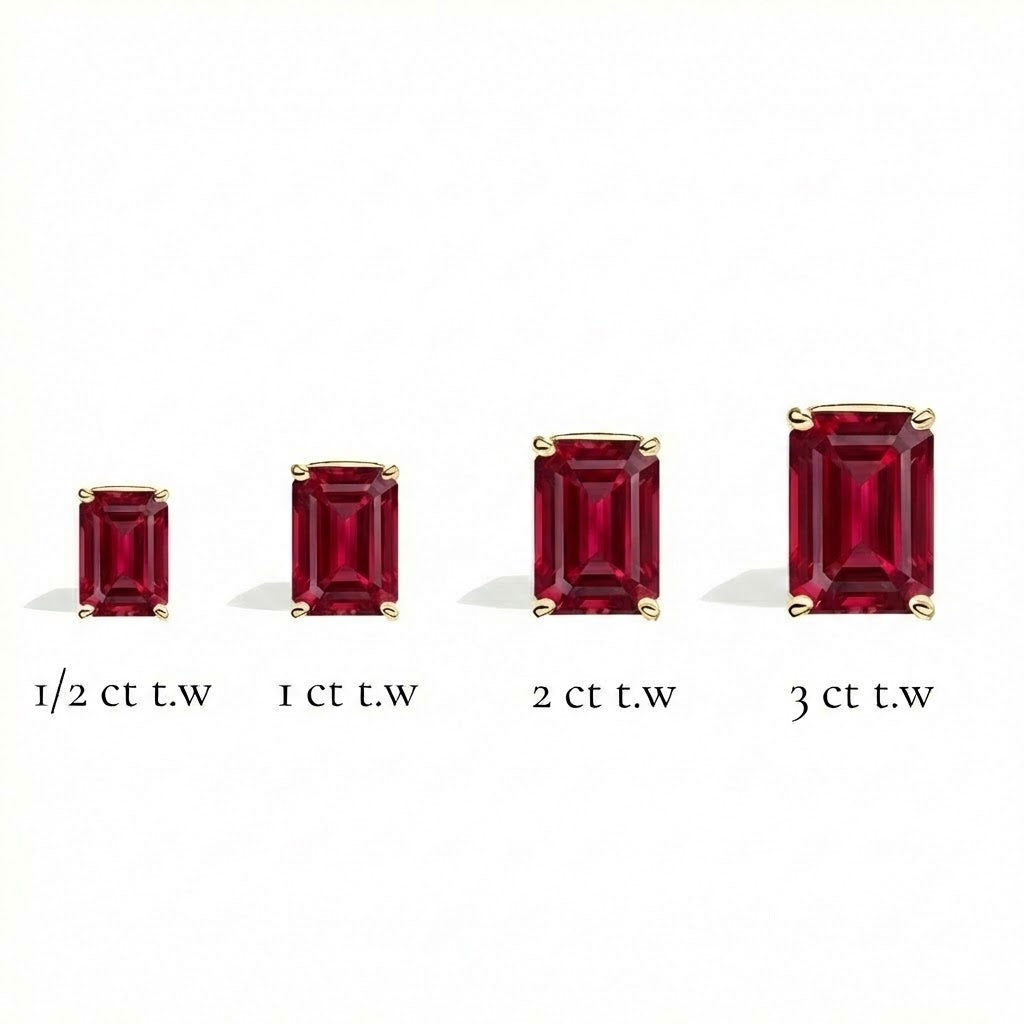 - Gemstone: Emerald Cut, Lab-grown Ruby