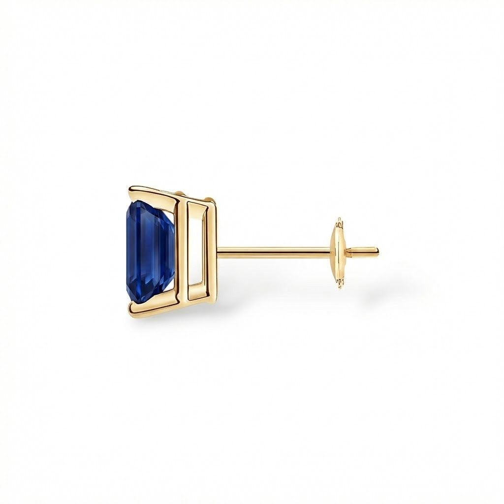 Sophisticated and timeless, the DEMAIN Sapphire Solitaire Stud Earrings feature a single emerald-cut lab-grown sapphire set in a refined prong setting.