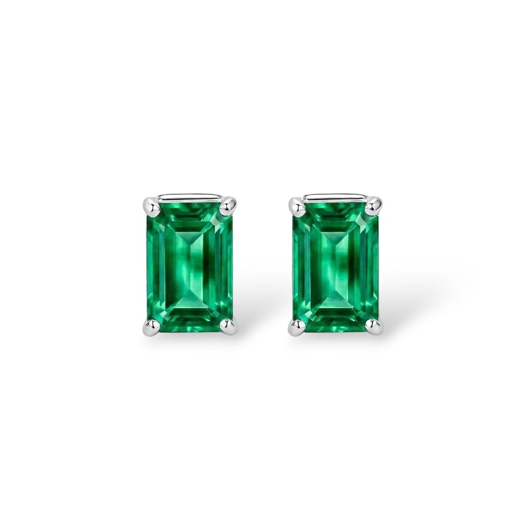 Sophisticated and timeless, the DEMAIN Emerald Solitaire Stud Earrings feature a single emerald-cut lab-grown emerald set in a refined prong setting.